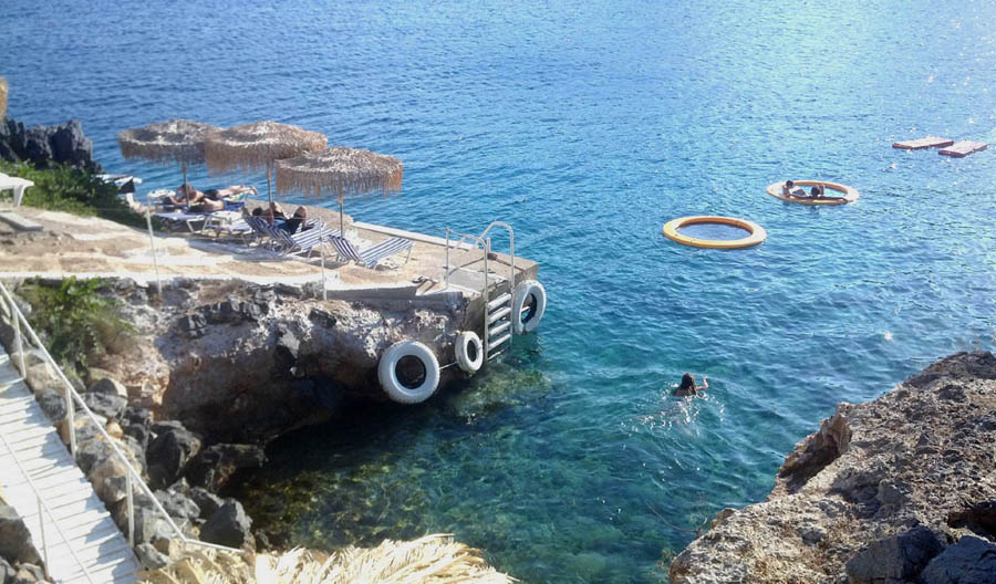 For the more adventurous, the Halikiada beach is on the right side of the harbor road. It is certainly one of the most beautiful beaches, also known as a nudist hangout, but there is a price to pay: to get there you have to go through the asphalt road, to continue on the path between the pine trees and then, very carefully, to test your powers of rappelling down to the sea.